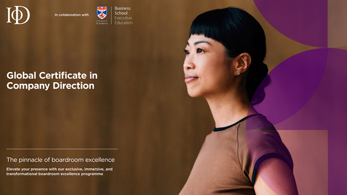 The Global Certificate in Company Direction is a boardroom governance and leadership programme co-delivered by the Institute of Directors (IoD) and the University of St Andrews Business School.